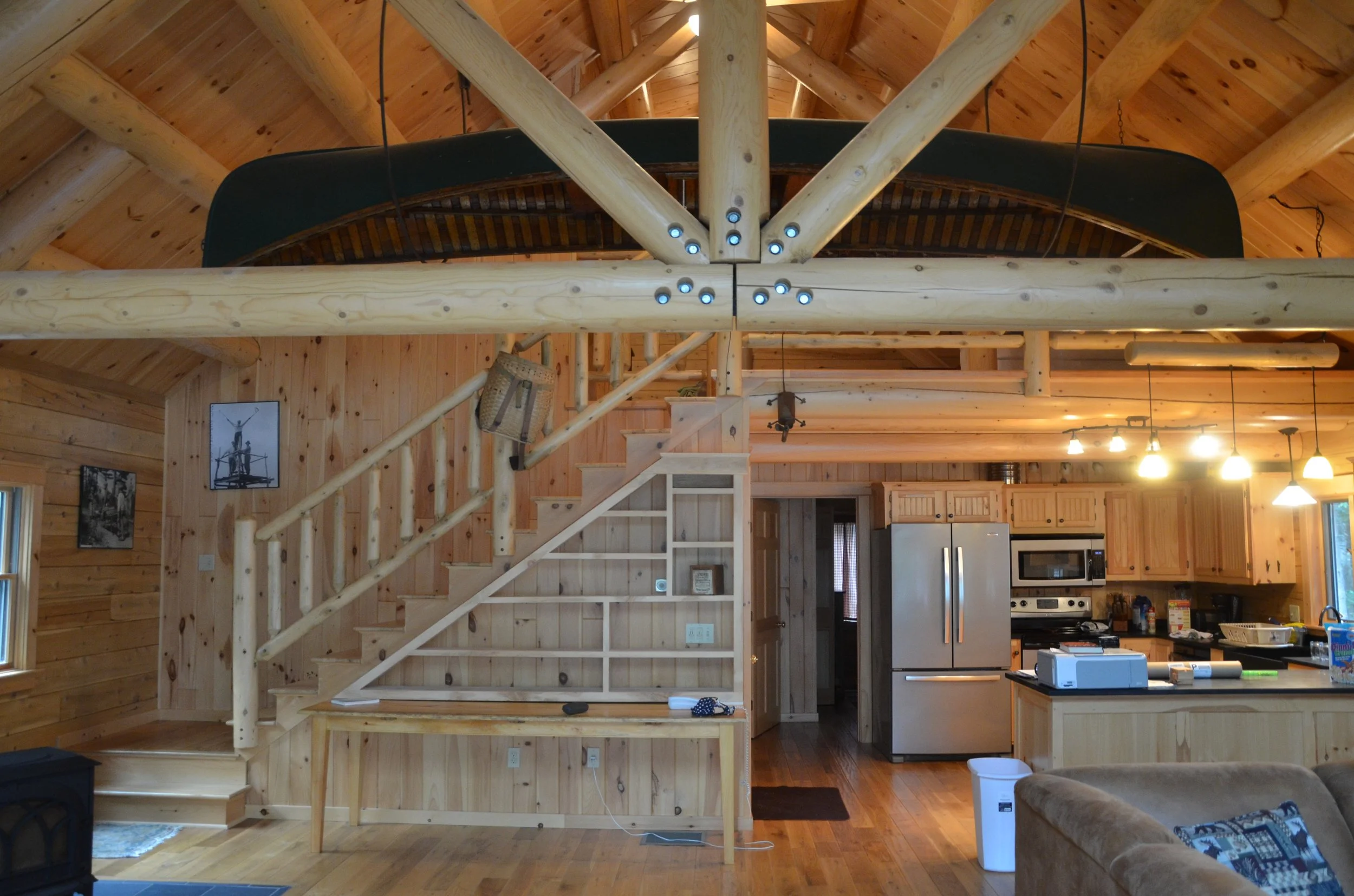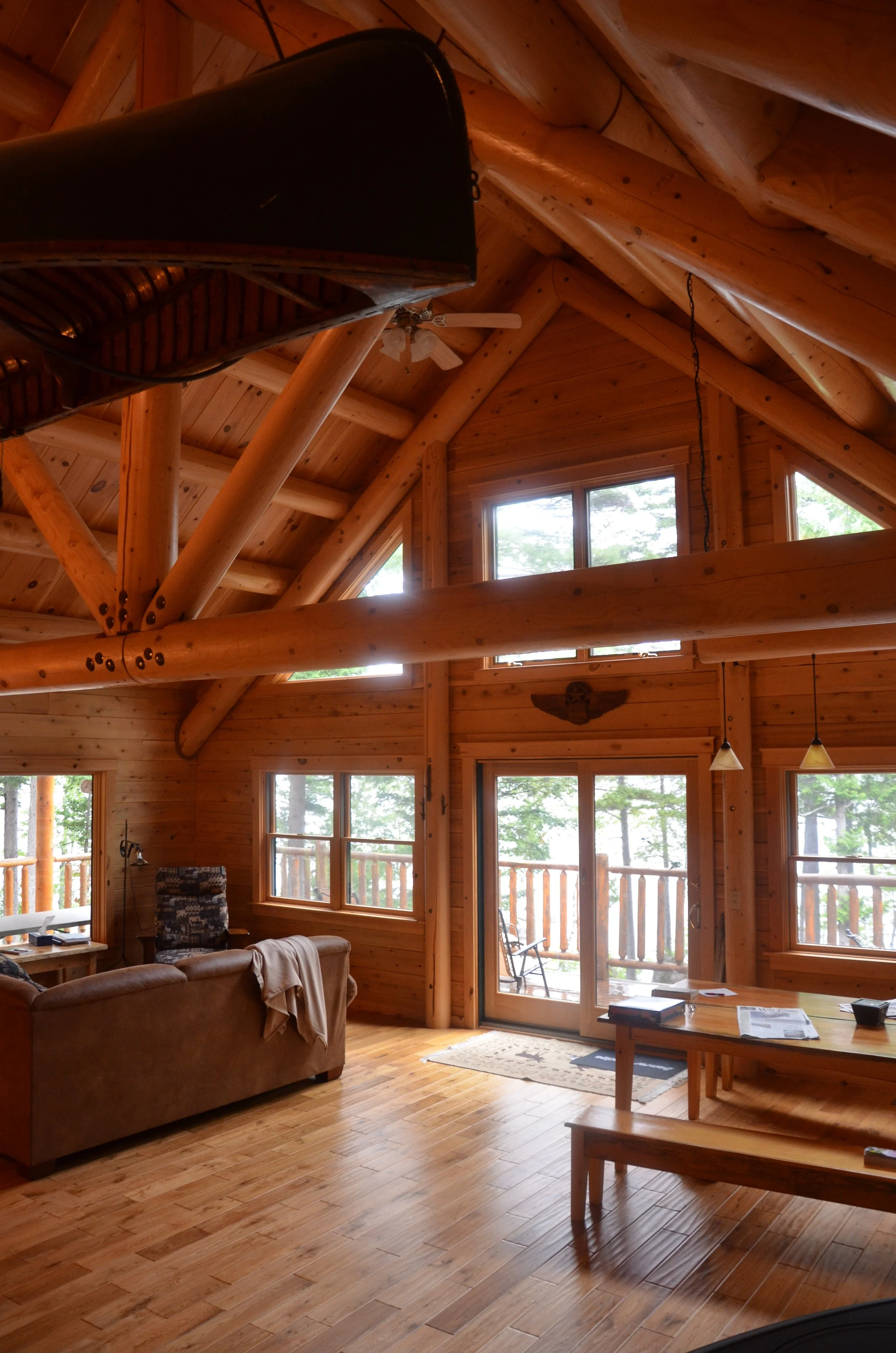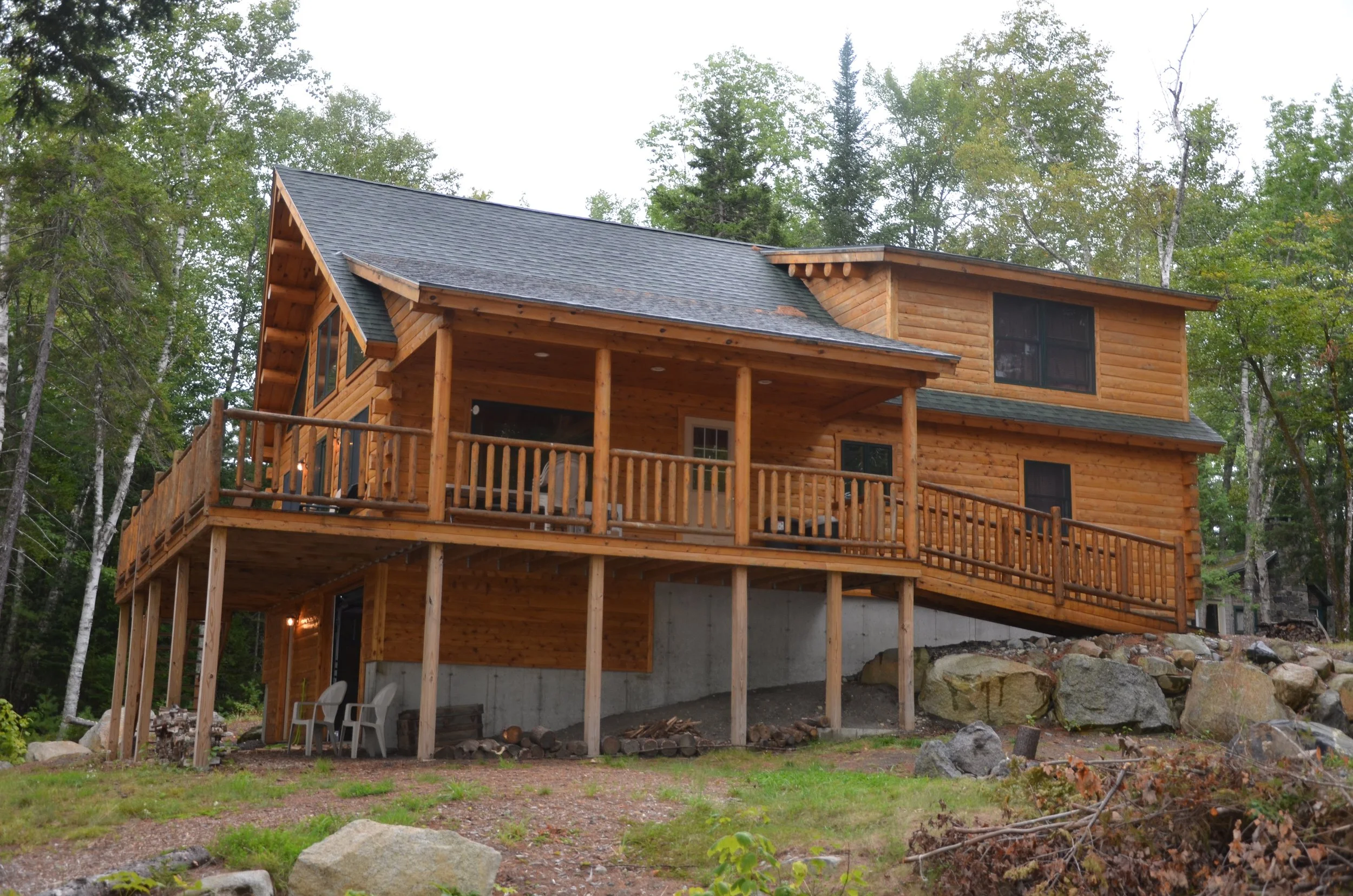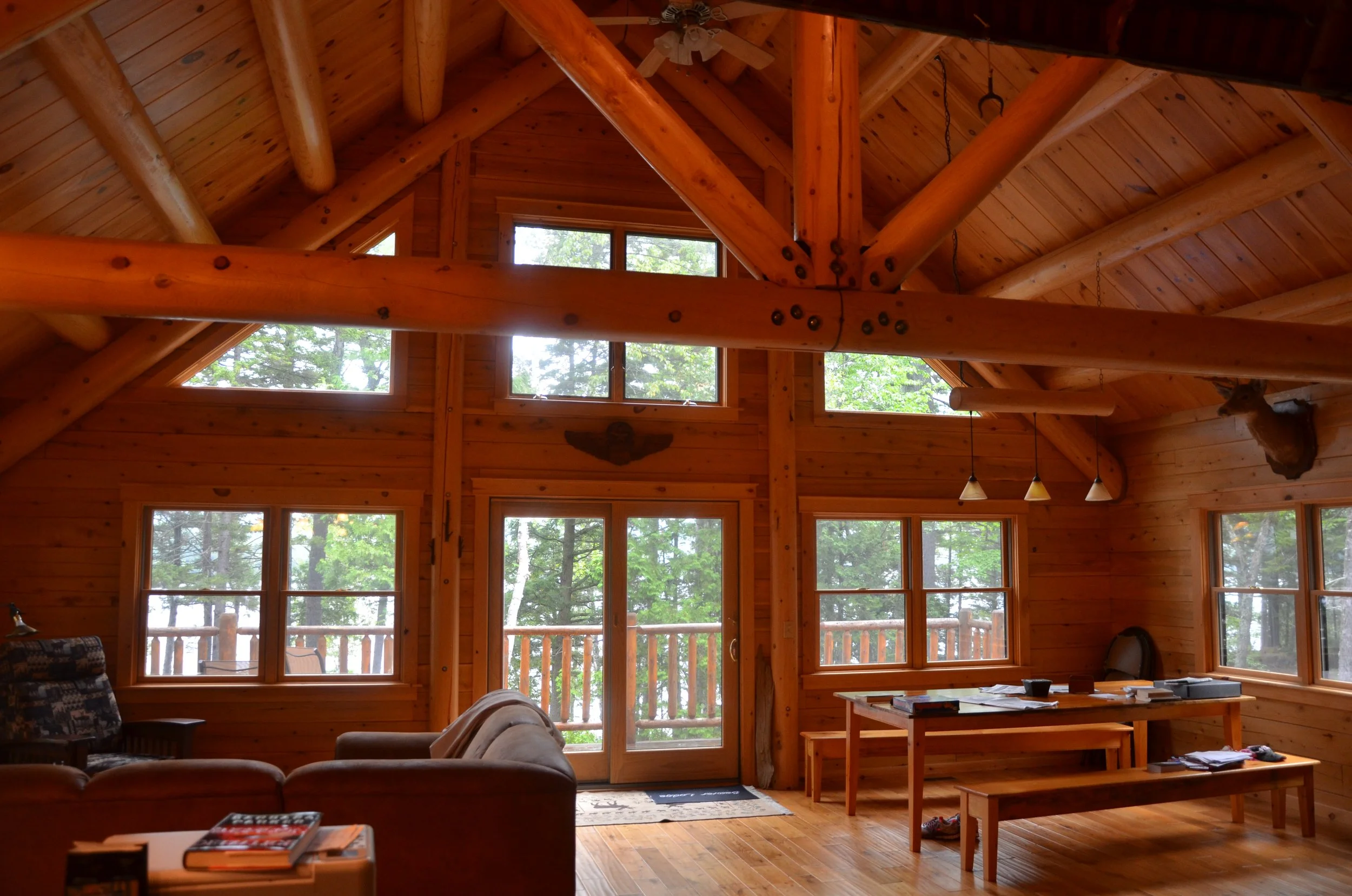 Beaver Lodge (Woodchuck Lodge) is the newest camp at Beaver Point. The building is 3 bedroom 2 bath. The garage level includes washer / dryer, storage, and a wood shop. Main floor consists of kitchen, living, and dining area. The main floor also includes the primary bedroom and a double bunk room. The upstairs loft has 2 single beds and a double. Sleeps 10 maximum.