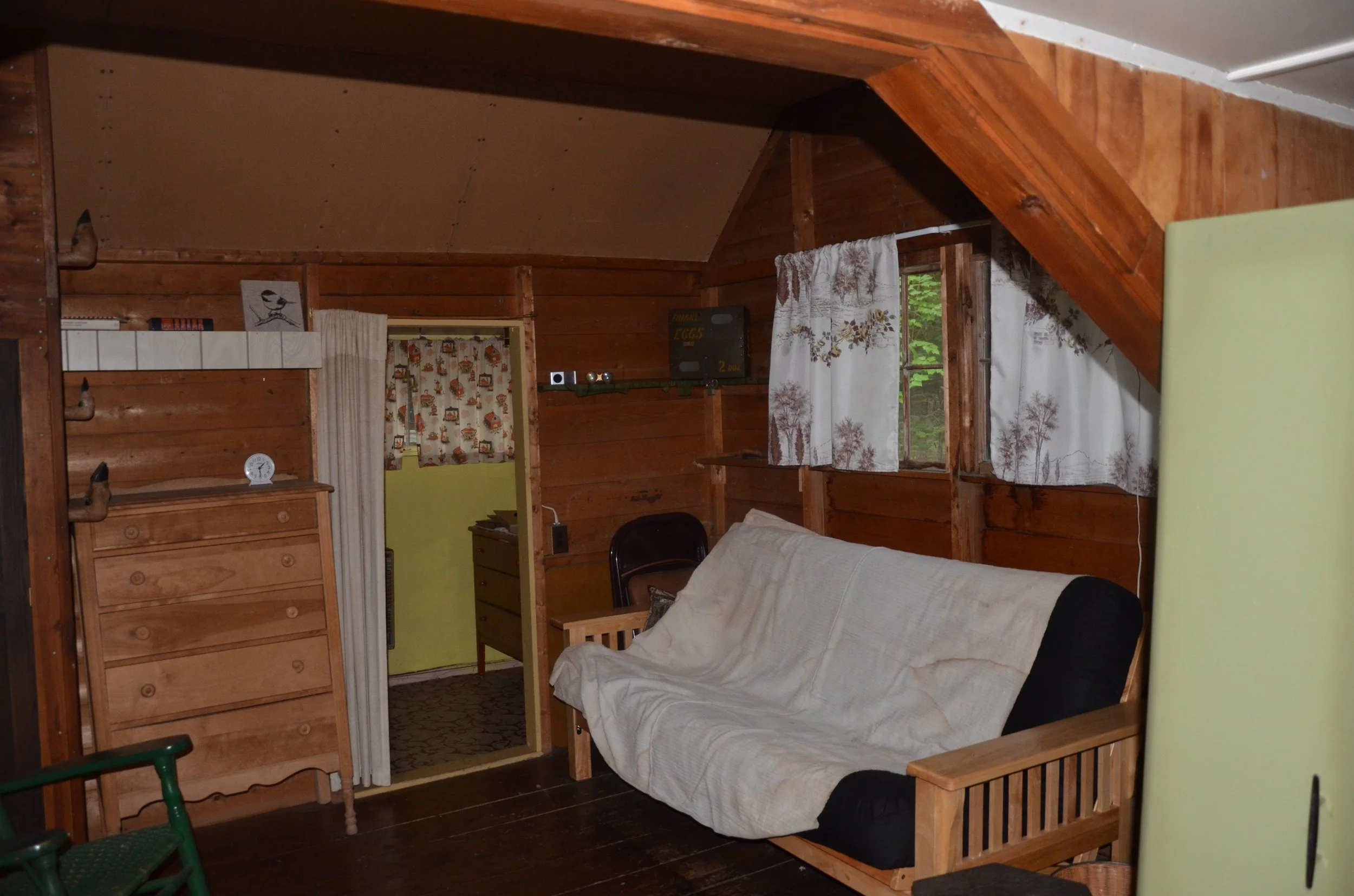 Chickadee is the smallest of all the camps. It includes a small kitchen and living space with one futon single, a bedroom with one single, and a sleeping porch with one single. Sleeps 3 maximum.