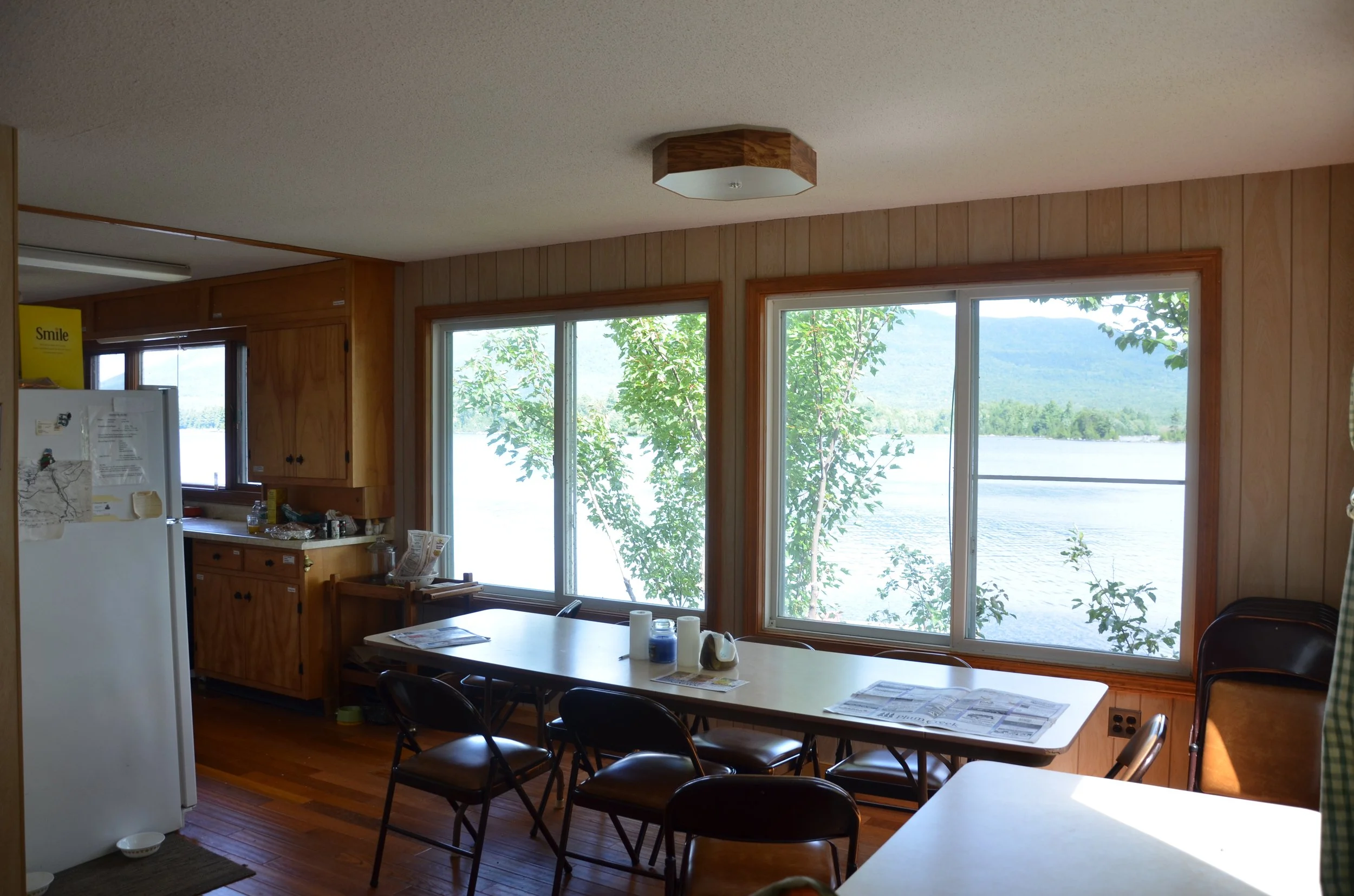 Lazy Beaver has 5 Bedrooms, 1 full bath, and 2 half baths. The garage level includes storage for many camp activities including water skiing, fishing, swimming, canoeing, kayaking, and paddle boarding. The main level has a large family style kitchen and dining area, large living space, and two bedrooms. Upstairs are 3 bedrooms including the famous Borestone Room. Lazy beaver has the largest dock of all the camps where the motorboat is typically docked. The two jet skis are also docked at this camp. This building can sleep 15 total.