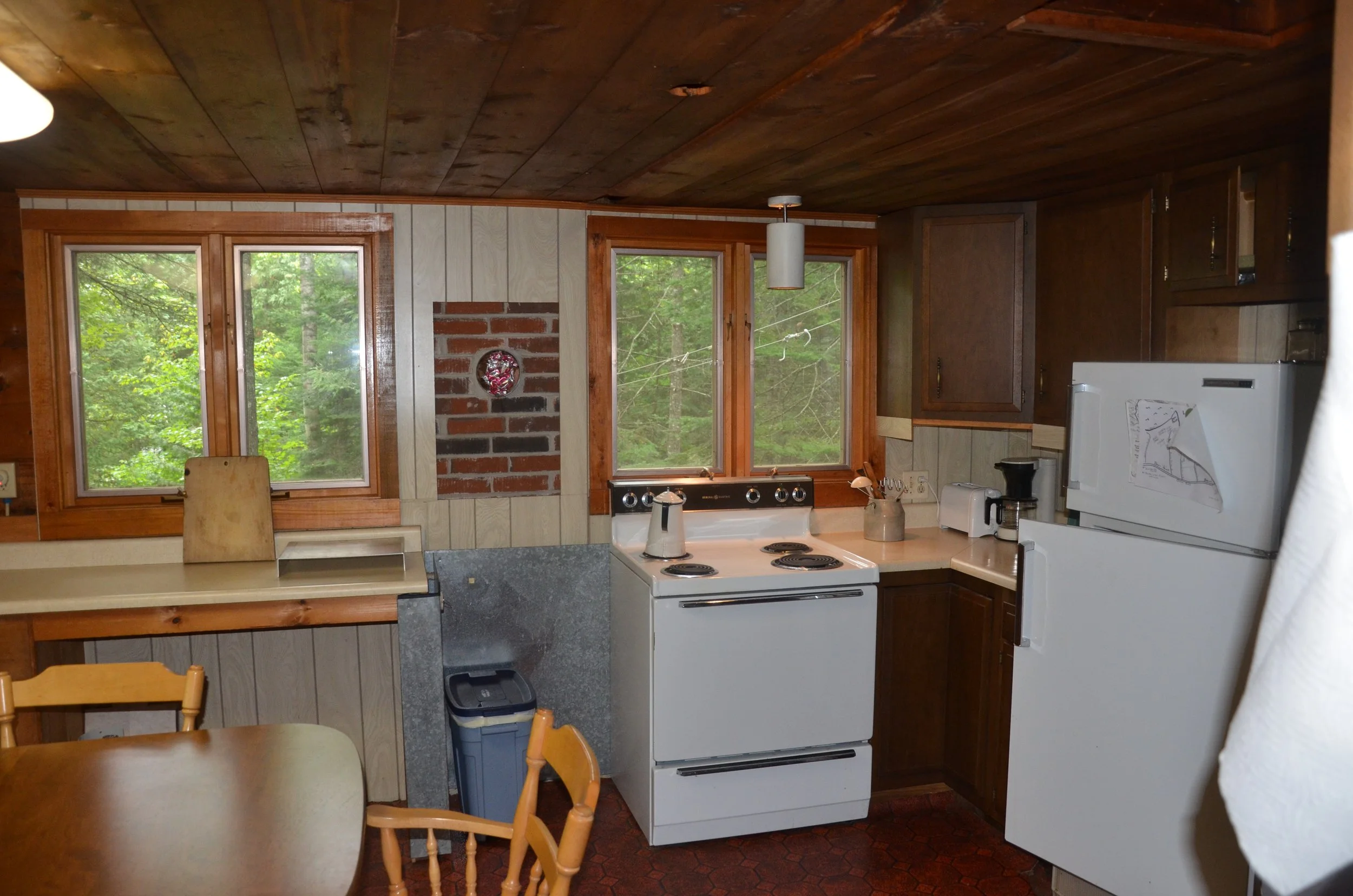 Moose is one of the original camps on the property. It includes a kitchen, living porch, one master bedroom, and one full bath. Sleeps 4 maximum.